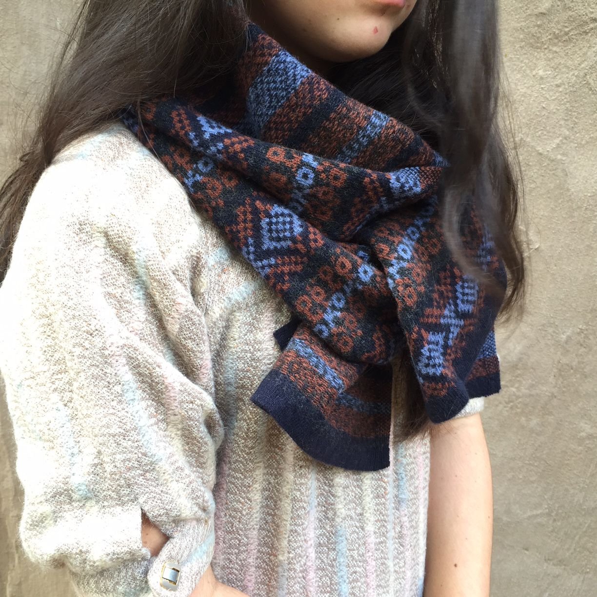 Dot and Stripe Fairisle Scarf / Deep Blue