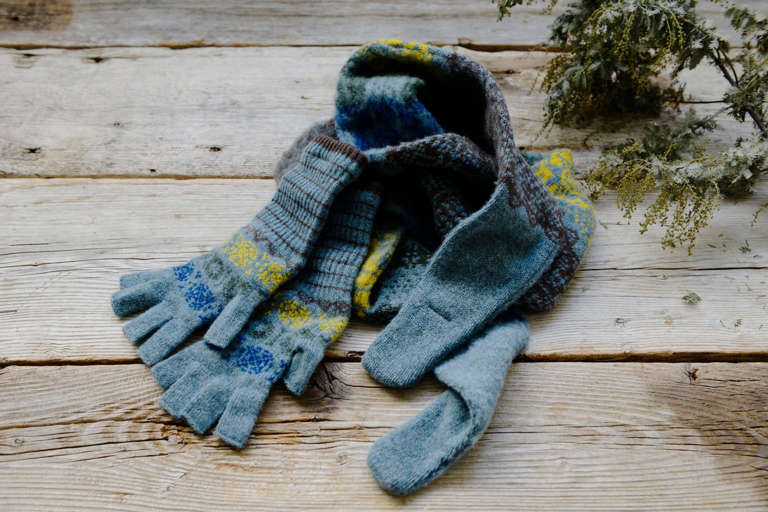 Dot and Tripe Fairisle Long Gloves / Deep Blue